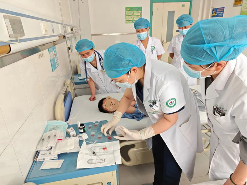 医护及时安抚患者家属情绪,同时对小松展开对症治疗,在完善检查后制定了个体化治疗方案。次日,儿科和检验科合作,在病房给小松做了骨髓穿刺术,完成骨髓采集。这是该第一例儿童胸骨骨髓穿刺术,全程无麻醉,且不足一分钟即完成操作。经过几天的治疗,小松血小板升至正常范围,临床出血情况明显改善,顺利出院。
