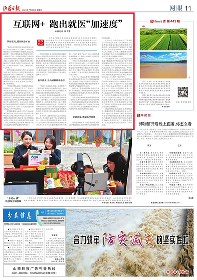 山西省医院协会常务理事单位——国药同煤总医院医务科科长朱骄锋介绍,除了简单导诊,该院互联网医院还能提供图文问诊、视频问诊、上门护理、药品寄送、医保脱卡支付、历史诊疗信息查询等服务。“对百姓来说,互联网医院的发展成果,就在于就医更简单、复诊更方便。”朱骄锋说。