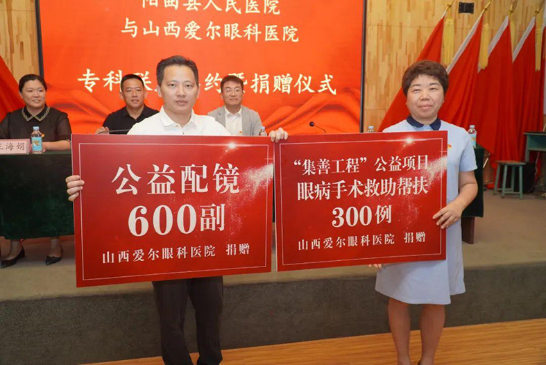 根据协议,山西爱尔眼科医院将帮扶阳曲县人民医院每年开展白内障、翼状胬肉等基础性眼科疾病手术100例,项目为期3年,共计300例;同时,为帮助阳曲县青少年儿童拥有一个明亮的世界、光明的未来,山西爱尔眼科医院将每年捐赠200副公益眼镜,并派出配镜流动车为阳曲县符合配镜条件的屈光不正儿童验配公益眼镜,项目为期3年,共计600副。