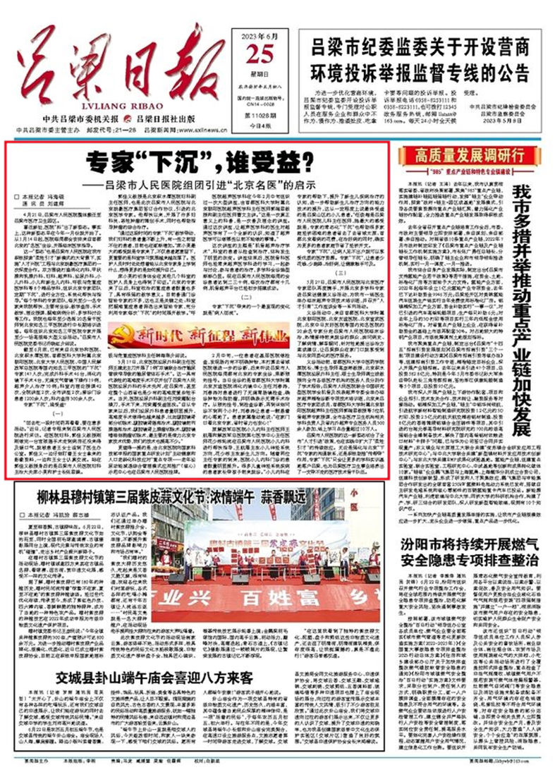 吕梁市人民医院的这一新姿态切合了全市“人才引进”政策,也在实践中扩大了“柔性引才”的持续效应。无论是强化与北京“下沉”专家的沟通联系,还是积极助推“传帮带”作用,专家“下沉”只会让更多的学科实训基地落户吕梁,也为吕梁医疗卫生事业培养出了一支带不走的医疗技术骨干队伍。