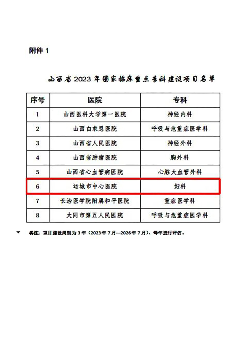 近日,山西省卫健委公布2023年国家临床重点专科建设项目名单,山西省医院协会常务理事单位——运城市中心医院妇科榜上有名。这是该院获批的第三个国家级建设项目。