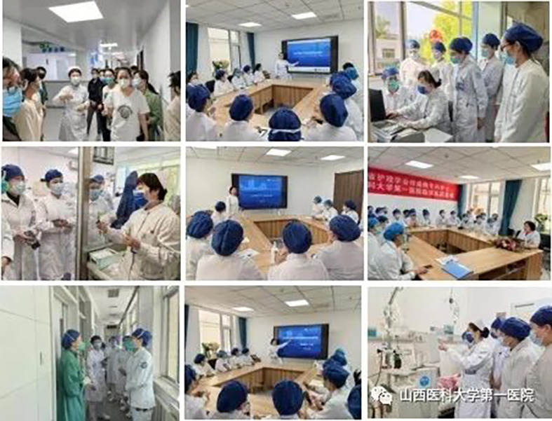 实践培训期间,学员们通过小讲课比赛展示了各自风采,感染病科护士长赵洁进行一对一指导,对多方位教学形式、护士临床思维能力培养、增强教学互动性及形式多样化等方面提出宝贵意见;去静脉通路中心进行规范化操作实践,在图书馆学习文献查阅方法,在院史馆感受山西医科大学第一医院的文化传承与历史发展。