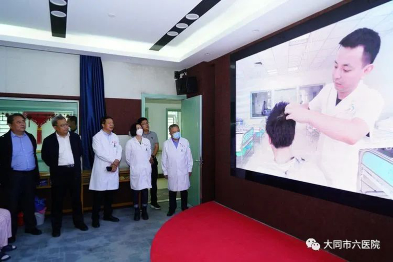 会后, 在曹德、刘海云等人陪同下,于天贵一行参观了大同市第六人民医院门诊、物理诊疗科、MECT治疗室、康复治疗科、儿童青少年心理科等科室。