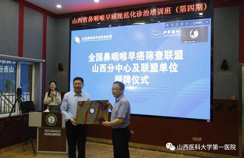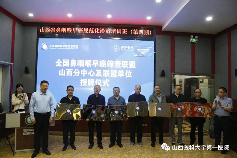 日前,山西省医院协会副会长单位——山西医科大学第一医院耳鼻咽喉-头颈外科举办山西省鼻咽喉早癌规范化诊治培训班(第四期)、咽喉嗓音疾病规范化诊疗论坛(第三期)、全国鼻咽喉早癌筛查联盟单位授牌仪式暨山西省电子鼻咽喉镜培训基地成立仪式。