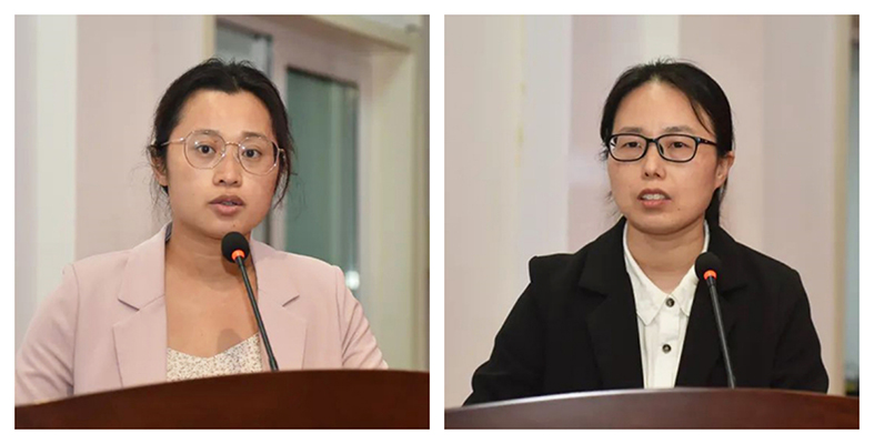 ▲许凌雪(左)表态、马艳梅(右)分享工作