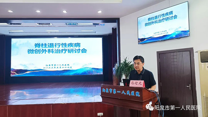 5月27日,2023年省级继续教育项目-脊柱退行性疾病微创外科治疗研讨会在山西省医院协会常务理事单位——阳泉市第一人民医院成功举办。解放军总医院骨科学部任大江、山西省医院协会副会长单位——山西省人民医院脊柱微创病区副主任高刚等脊柱微创专家受邀到场作讲座。阳泉市第一人民医院副院长马迎光出席会议并致辞,院党委委员葛建忠、骨二科主任薛阳静、骨三科副主任王琳主持会议。