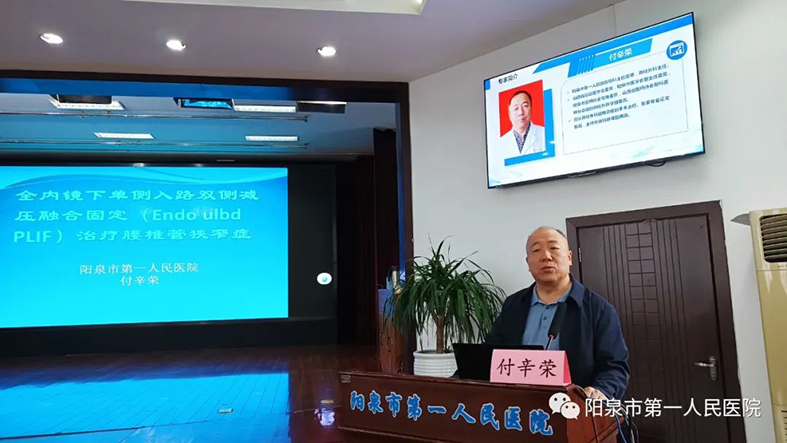 阳泉市第一人民医院葛建忠、付辛荣、王琳,王涛、马健、苏斌、郝喜荣等围绕“椎间孔镜治疗椎间盘突出的临床体会” “Endo Ulbd Plif治疗腰椎管狭窄症”“ UBE在颈腰椎疾病中的应用”“骨水泥渗漏““EndoSurg理念下可视化关节突成型术治疗退行性椎间孔狭窄症“”显微镜下腰椎管内占位性病变切除术”” 椎间孔镜板间入路治疗腰椎间盘突出症”“ OLIF治疗腰椎退行性疾病”等话题开展技术交流与经验分享,深入探讨了脊柱微创领域遇到的问题及前沿发展理念。(马健)