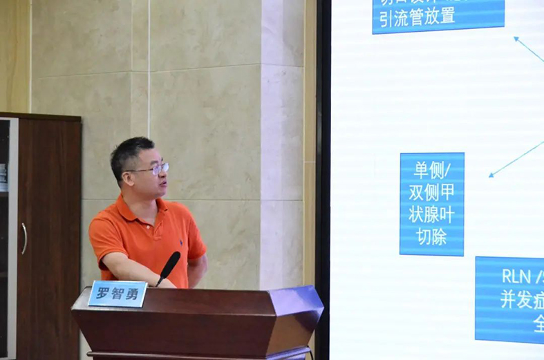 学术报告单元,华中科技大学同济医院罗智勇教授作题为“甲状腺手术与甲状旁腺保护”的分享,详细介绍了甲状腺手术及甲状旁腺保护的相关知识和技术,分享了自己多年的临床经验和技术心得。韩建立讲授“甲状腺结节的外科处理策略”,介绍甲状腺结节的分类和特点、诊断方法、治疗方法,并详细介绍甲状腺结节手术的术前准备、手术技巧、术后处理等方面的知识和技巧。甲状腺结节是临床常见的甲状腺疾病之一,发病率逐年上升。甲状腺结节的诊断方法,包括超声检查、细针穿刺细胞学检查、功能检查等,其中超声检查是诊断甲状腺结节最常用的方法,重点是鉴别出良恶性结节。其治疗方法包括手术治疗、消融等。在选择手术治疗时,需要根据患者的具体情况,综合考虑多种因素,制定出最合适的治疗方案,严格掌握适应症,不该开的刀坚决不开。运城市中心医院霍云峰、晋城大医院丁建忠、山西白求恩医院任崇仁和赵文君参与讨论,引深主题。