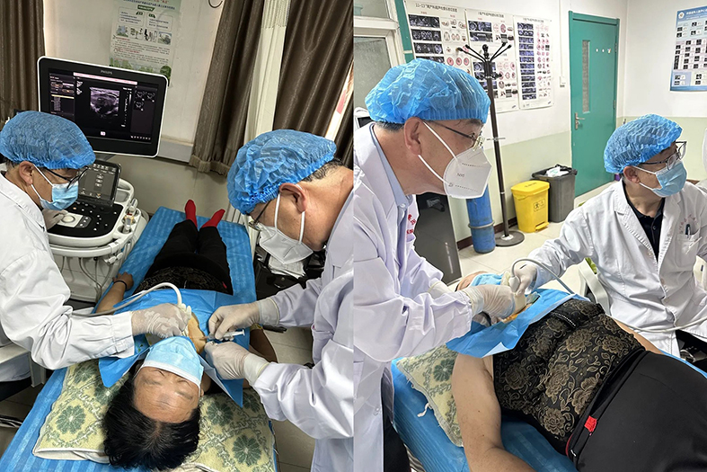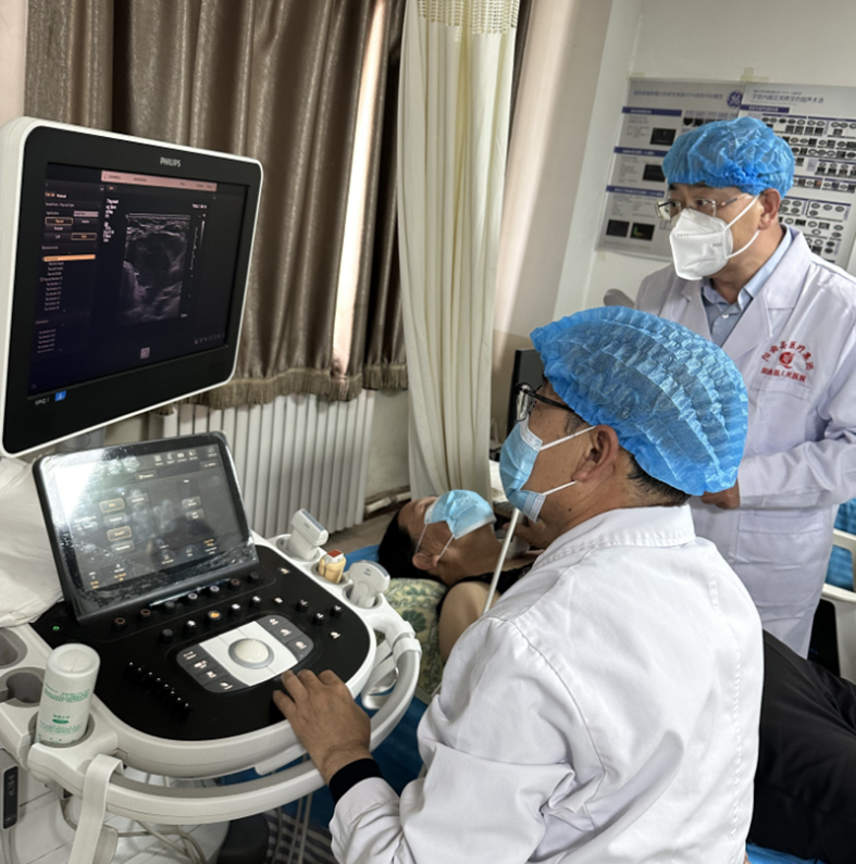 5月18日,山西省医院协会理事单位——阳曲县医疗集团人民医院彩超室团队在山西省医院协会常务理事单位——山西医科大学第六医院(太钢集团总医院)超声科专家张全斌的指导下,与普外科团队密切配合,首次为患者施行超声引导甲状腺细针抽吸细胞学检查,为甲状腺肿物术前定性提供了准确的辅助诊断依据。