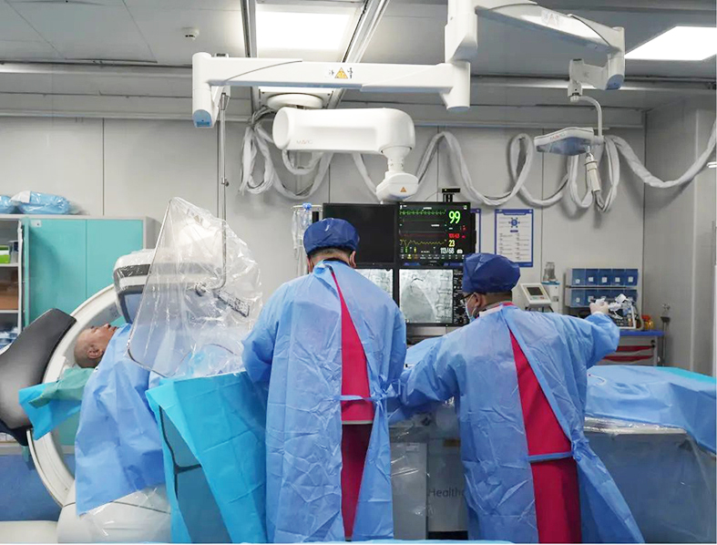 当日,该院心内科团队在山西省医院协会常务理事单位——太钢集团总医院心内科张永红教授的带教下,为5名患者实施冠脉造影检查。针对3名患者冠脉造影显示冠脉严重狭窄的情况,心内科团队结合具体病情,先后为2名患者行心脏支架植入术、1名患者行药物球囊成形术,手术过程顺利,患者安返病房,无不良并发症发生。