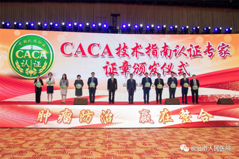 会议期间,中国抗癌协会为胡文庆颁发CACA技术指南认证专家证章。这是现场为山西专家颁发的唯一证章。同时被认证的还有长治市人民医院胃肠外科副主任崔鹏、魏伟、宗亮。