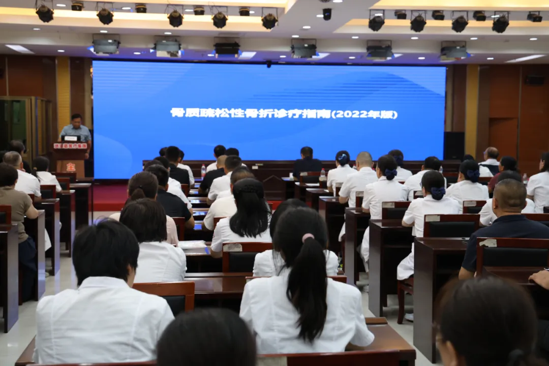 学术环节中,郝海虎对《骨质疏松性骨折诊疗指南》进行了深度解读,结合临床案例,详细阐述了骨质疏松性骨折的诊断标准、治疗方案及康复管理要点,为参会人员提供了清晰的诊疗路径。