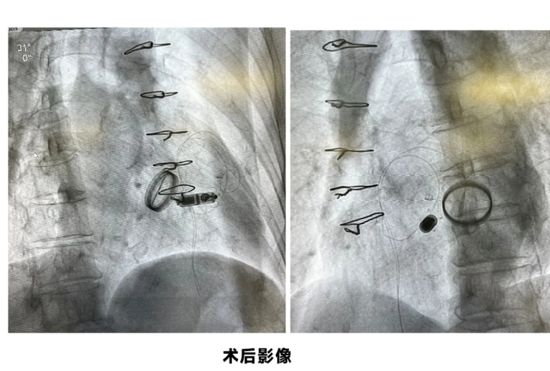 在充分评估患者病情并与其家属沟通后,心血管内科团队决定采用无导线起搏器进行植入。手术过程耗时约30分钟。术中通过股静脉穿刺建立通道,将起搏器通过导管精准植入到心腔内部。手术全程无切口、无导线、无需制作皮下囊袋,有效规避出血及感染风险。患者术后12小时即下床活动,目前已康复出院。