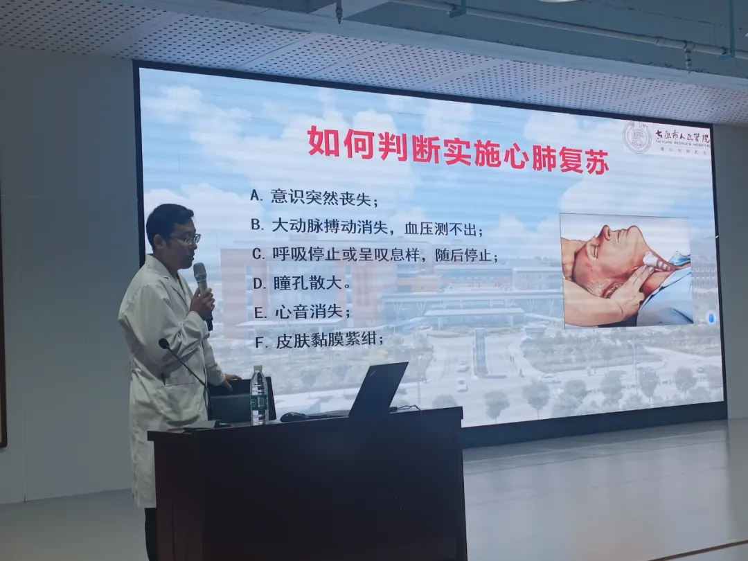 理论授课环节,医护人员结合校园场景,围绕心肺复苏的重要性、适用场景展开讲解,通过PPT演示、动画视频及案例分析,清晰拆解“判断意识与呼吸—胸外按压—开放气道—人工呼吸”的完整流程,重点强调按压位置(两乳头连线中点)、按压深度(5~6厘米)、按压频率(100~120次/分钟)等关键要点,同时纠正常见操作误区,确保学生理解急救原理。