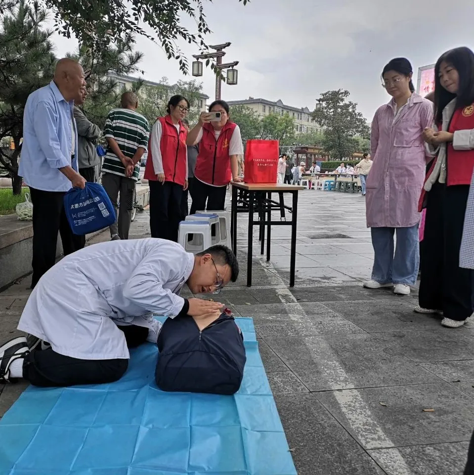 活动还设置科普讲座,助力居民提升健康素养和自我保健能力。妇科副主任医师贾燕在《妇科常见病多发病的诊断与处理》讲座中,普及了妇科炎症、宫颈疾病等知识。计划生育手术科副主任医师郭晋菊以《子宫脱垂、漏尿的预防和治疗》为题,为群众讲解了盆腔疾病的各种治疗方法。急诊科牛顺彬现场讲解并演示心肺复苏(CPR)和海姆立克急救技能,手把手指导居民掌握胸外按压、人工呼吸等关键动作。