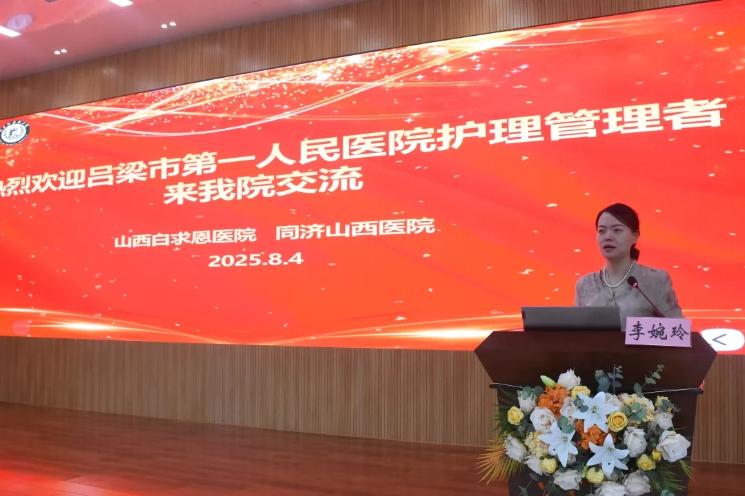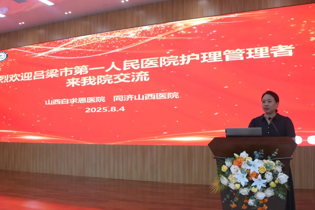 2025年8月,山西省医院协会常务理事单位——吕梁市第一人民医院护理部主任吴旭友带领43名护理管理者,分四批来到山西省医院协会副会长单位——山西白求恩医院 同济山西医院交流学习。山西白求恩医院护理部高度重视此次交流活动,为每批护理管理者举行了欢迎仪式,并结合大家的专科方向,安排了一对一全程指导的管理带教老师,从安全、质量、教学、科研、人文等方面进行全方位交流。