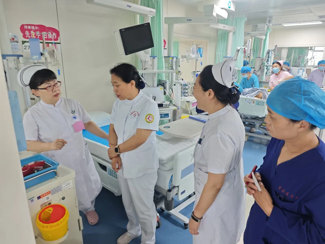交流期间,吕梁市第一人民医院的护理管理者积极融入山西白求恩医院各科室的日常工作中,从晨会交接班的信息传递模式,到床边护理的沟通技巧;从护理质量指标的监测分析,到不良事件的根因追溯;从实习生、进修生的带教模式,到护理人员继续教育的学分管理体系,从VTE预防、疼痛综合管理,到快速康复外科理念下的围手术期护理路径,从护理记录书写、专科操作要点的精准指导到急救管理的实操示范,所有环节均聚焦护理管理精髓,彰显了山西白求恩医院在提升患者安全和服务效率中的专业引领。