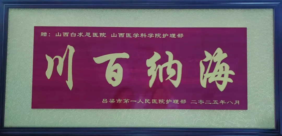 此次交流学习活动,不仅为两院后续开展长期深度合作筑牢了基础,更为山西白求恩医院中华护理管理者培训基地的建设积累了宝贵经验。交流结束时,吴旭友代表吕梁市第一人民医院医院护理部郑重送上一块镌刻着“海纳百川”的牌匾,表达山西白求恩医院开放包容、倾囊相授的感激之情。(陈新 许文辉)