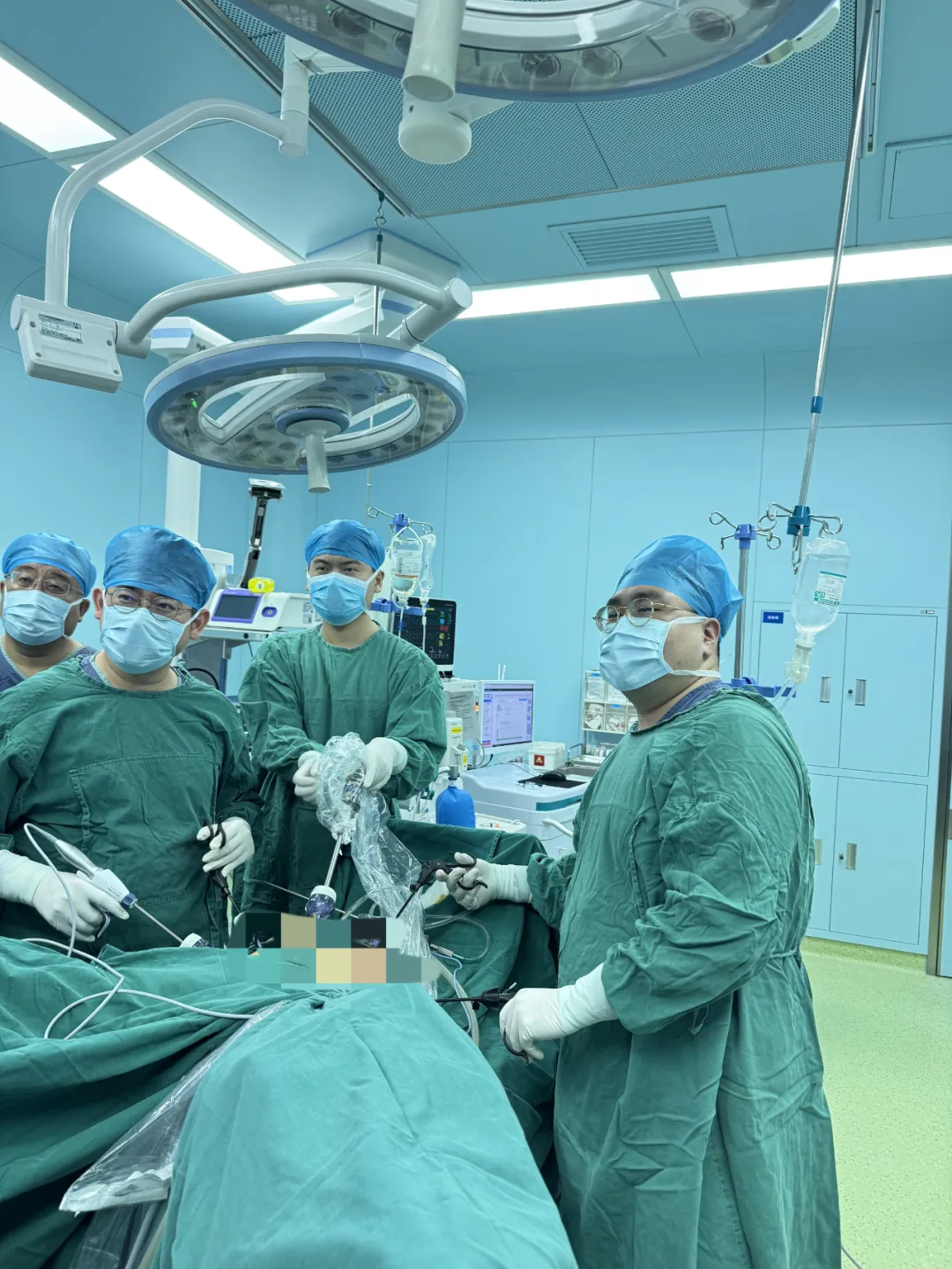 这是一项极具挑战性的高难度腹腔镜手术,被誉为结直肠外科领域的珠穆朗玛峰之一。其难点主要源于结肠的解剖范围广、毗邻结构复杂、手术步骤繁多且技术要求高。加之患者基础疾病复杂,还曾于2014年因胰体尾部囊腺瘤接受胰腺良性肿瘤及脾脏切除术,导致腹腔内广泛粘连,解剖结构异常,进一步增加了本次手术的难度。此外,患者合并肺气肿及肺大泡,对术中麻醉管理及术后恢复提出极高要求。