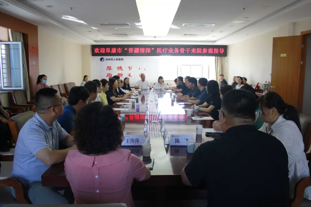 为深化晋疆两地医疗领域的合作与联动,通过经验共享、技术交流,推动双方医疗服务能力提升,2025年9月7日,由新疆阜康市医共体总医院市人民医院院区、阜康市卫生健康委员会、阜康市医共体总医院妇幼保健院分院及阜康市援疆办联合组建的“晋疆情深”医疗业务骨干交流团一行21人来到山西省医院协会常务理事单位——忻州市人民医院,开展参观交流活动。忻州市人民医院党委书记李鹏飞、副院长白雪卿,援疆干部朱江涛、付海燕及相关科室负责人参加座谈会。