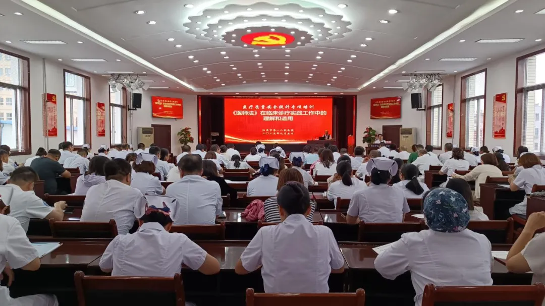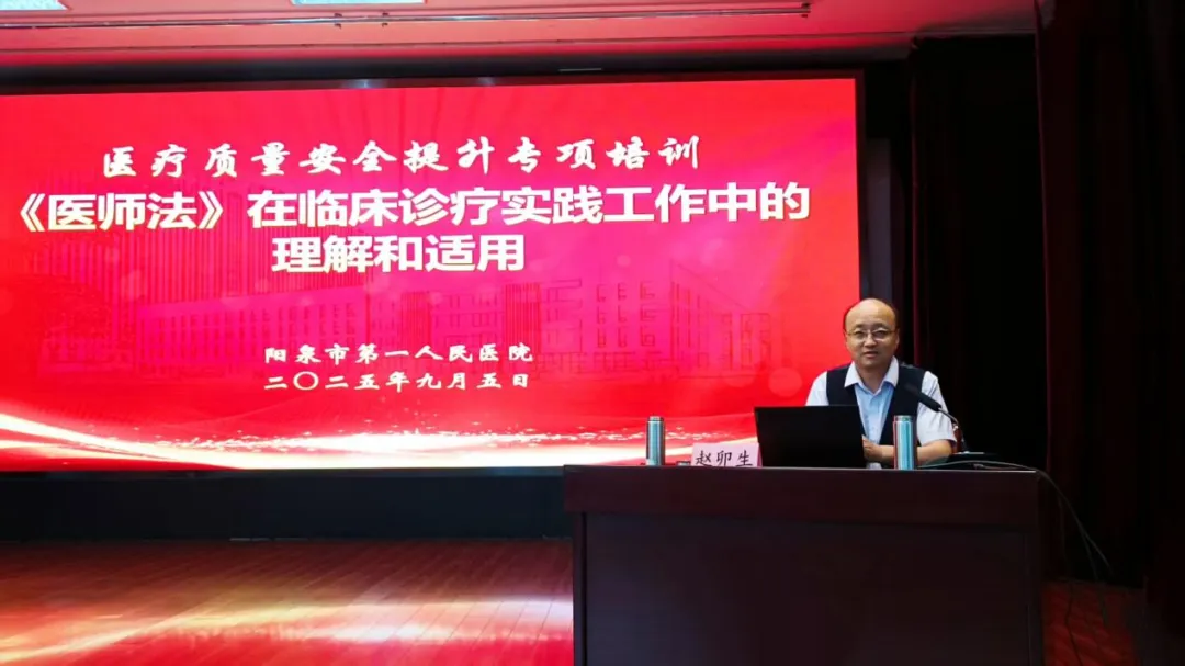 为深入贯彻省市卫健委关于《医疗机构医疗质量安全专项整治行动方案》的各项部署要求,切实推进本院医疗质量安全专项整治行动,9月5日,山西省医院协会常务理事单位——阳泉市第一人民医院组织召开“《医师法》在临床诊疗实践工作中的理解和适用”专题培训会。中国政法大学教授、博士生导师赵卯生教授受邀授课。院长马迎光、副院长张芬芳出席会议。各临床、医技和职能科室医务人员共计130余人参会。