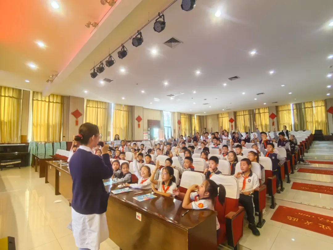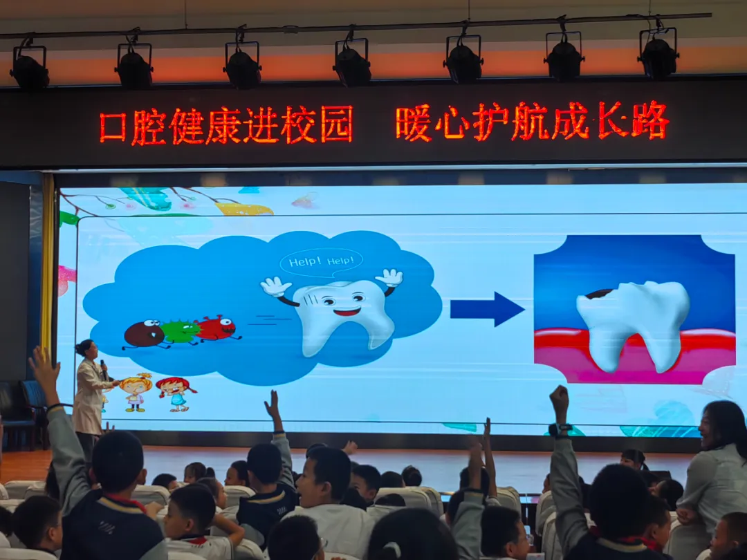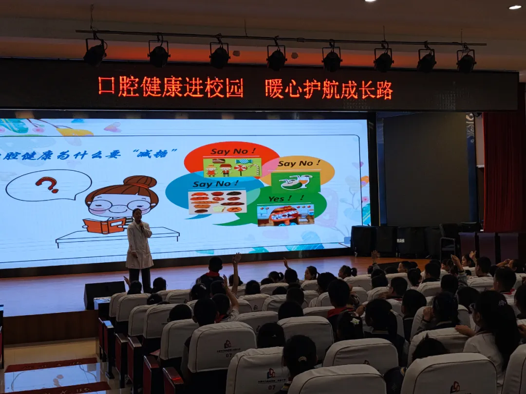 “小朋友们,知道我们的牙齿有多少颗吗?”“怎样刷牙才能打败蛀牙菌这个大怪兽呢?”讲座以一系列充满童趣的提问开场,瞬间吸引了同学们的注意力。
