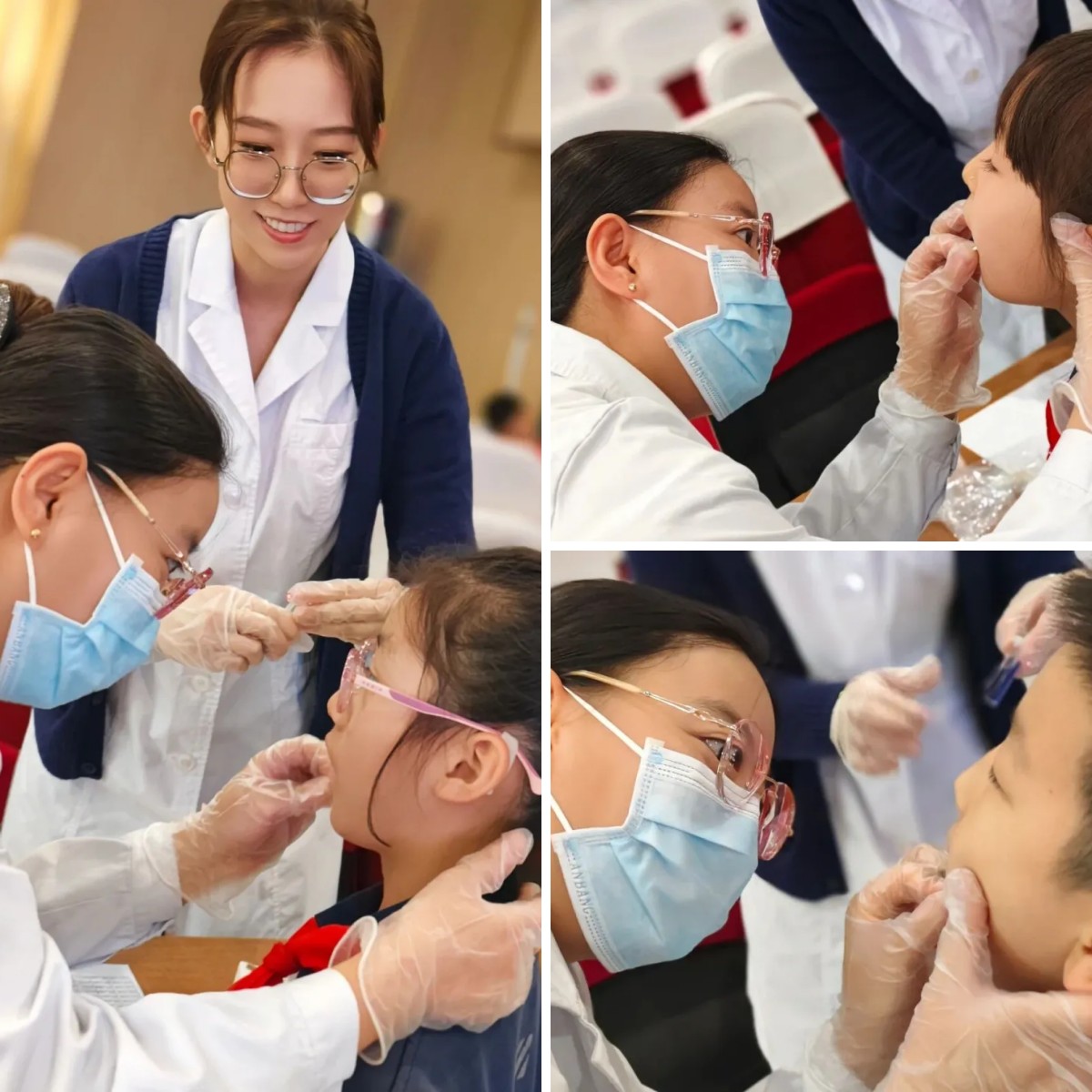 在学校安排的临时检查区,医护人员耐心细致地为一百名学生进行了免费的口腔健康检查和龋态检测。检查过程中,医生们动作轻柔,不断安抚有些紧张的孩子,并仔细记录了每一位学生的口腔健康状况。