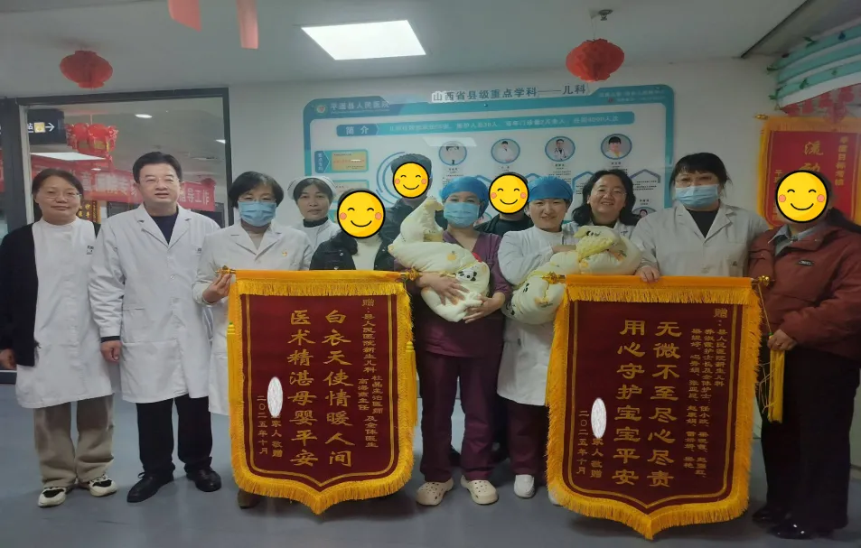 2025年10月9日,一对胎龄36周+4天的双胞胎宝宝在平遥县人民医院妇产科通过剖宫产提前降临人间。由于早产,宝宝一出生便面临着新生儿呼吸窘迫综合征、酸碱平衡紊乱等挑战。