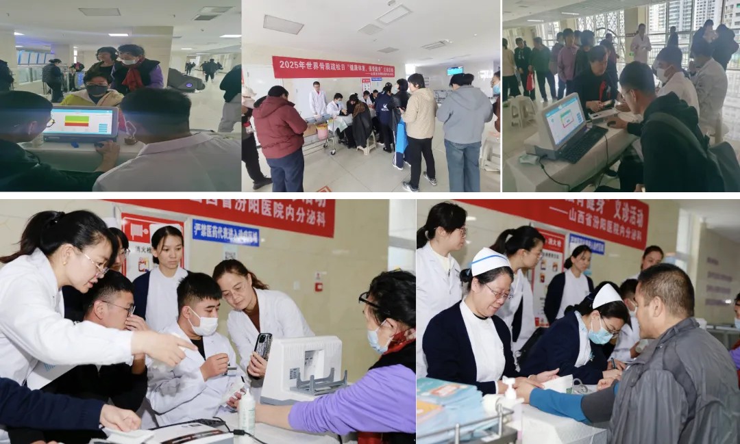 为提高公众对骨质疏松症的防治意识,普及骨骼健康知识,10月20日,山西省医院协会常务理事单位——山西省汾阳医院内分泌科在门诊,围绕世界骨质疏松日主题开展了义诊活动。内分泌科主任王丽丽、护士长古瑞玲带领医护团队,提供骨密度筛查、血压测量、答疑解疑等服务,吸引大量群众前来参与。