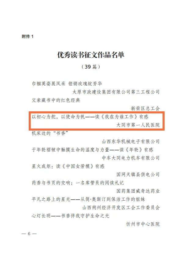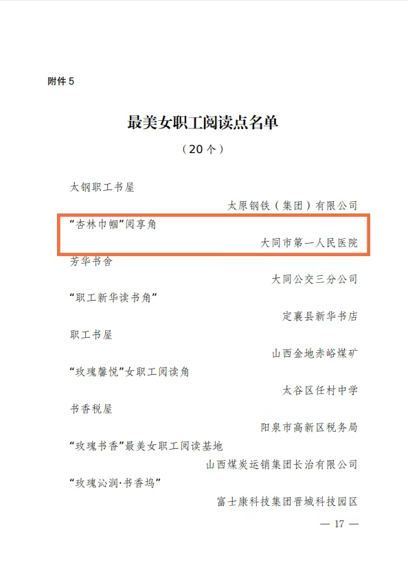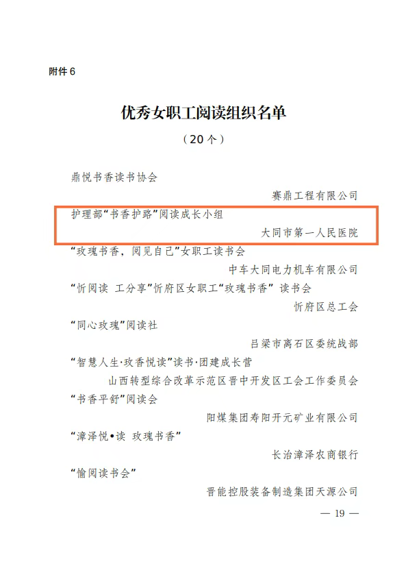 近日,2025年全省“玫瑰书香”女职工主题阅读活动成果正式揭晓,山西省医院协会常务理事单位——大同市第一人民医院女职工在活动中表现出色,凭借优质的阅读成果和组织工作,荣获三项重要荣誉,充分展现了医院女职工深厚的文化素养和昂扬的精神风貌。