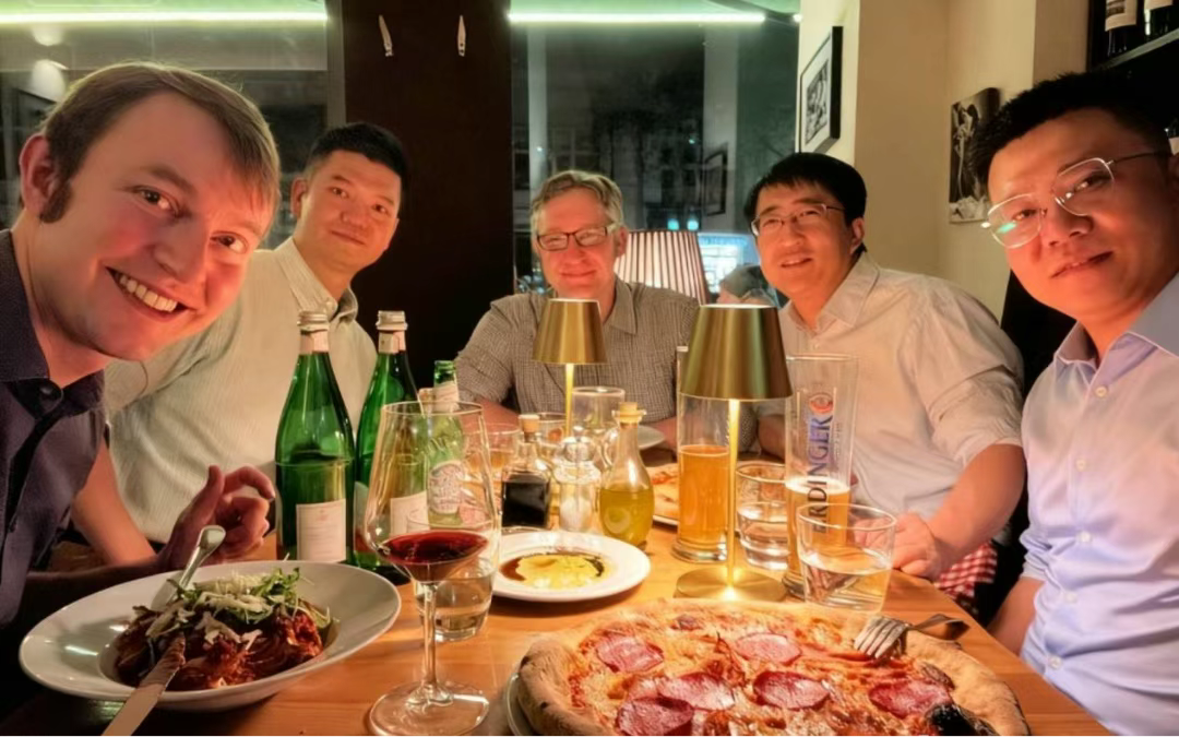 祁晓刚博士与德国著名骨科专家Frank教授的互动成为此次行程的一大亮点。双方首先于会场内开展专业研讨,会后Frank教授亦发出晚餐邀请。 在轻松愉悦的氛围中,双方围绕共同关注的学术议题,进行了长达数小时深入且开放的对话。这一特别的邀约,充分彰显了国际权威学者对祁晓刚博士学术潜力与个人素养的高度认可。
