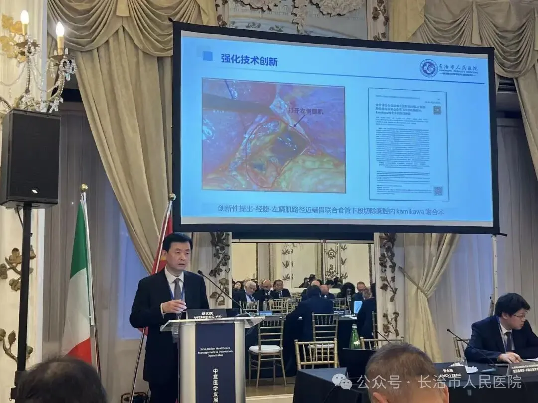 10月26日至11月1日,由意大利国际医学交流中心与中国外文局教育培训中心联合组织的首届中意消化外科高峰论坛暨顶级医院参访交流项目在意大利举行。山西省医院协会副会长单位——长治市人民医院党委书记、胃肠外科学科带头人胡文庆教授作为核心成员全程参与,并在中意医学发展与管理创新圆桌对话中作专题报告,向国际同行分享了医院在医疗技术创新与分级诊疗体系建设方面的先进经验。