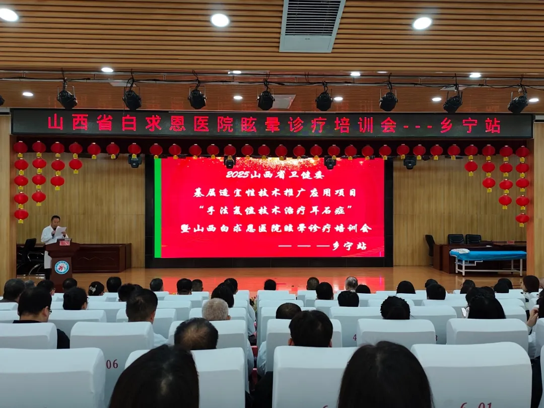 为切实落实省卫健委精神,积极开展基层适宜技术的推广应用,2025年11月2日,山西省医院协会理事单位——乡宁县医疗集团邀请山西白求恩医院神经内科主任李新毅教授及燕毅男医生,开展了手法复位技术治疗耳石症暨山西白求恩医院眩晕诊疗培训班。乡宁县医疗集团党委书记、院长刘海斌出席并致辞,集团副院长马选平主持。