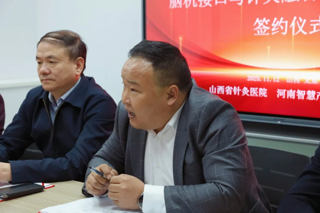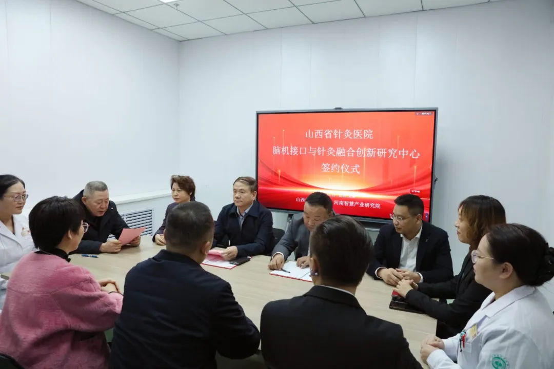 2025年11月12日,山西省医院协会副会长单位——山西省针灸医院与河南翔宇医疗设备股份有限公司在医院建南康复院区举行“脑机接口与针灸融合创新研究中心”签约暨揭牌仪式。山西省针灸医院院长郝重耀、副院长吕玉娥,河南翔宇医疗设备股份有限公司、河南省智慧康养设备产业研究院有关负责人出席仪式。医院党院办、医务科、科教科负责人及康复科骨干成员参加活动。