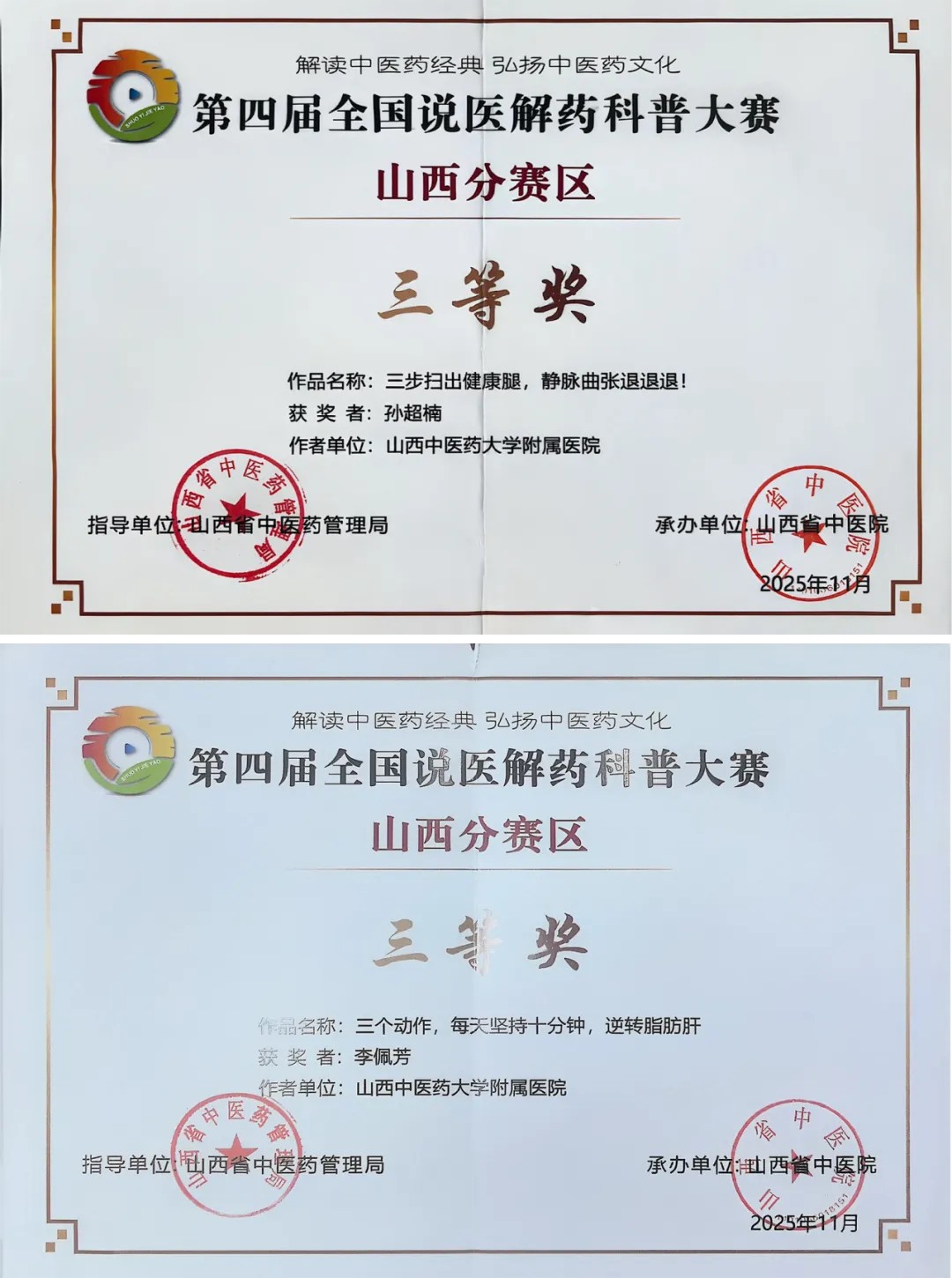 山西中医药大学附属医院介绍,此次比赛成绩体现了医院在中医药健康科普创作上的领先优势,彰显了医护人员将专业知识转化为大众语言的能力与担当。近年来,该院始终坚持以人民健康为中心,大力推动中医药文化传播,鼓励临床一线人员“既当好医生,也做好科普”,打造出一批有温度、有深度、接地气的科普作品。(康曦 袁晓霞)