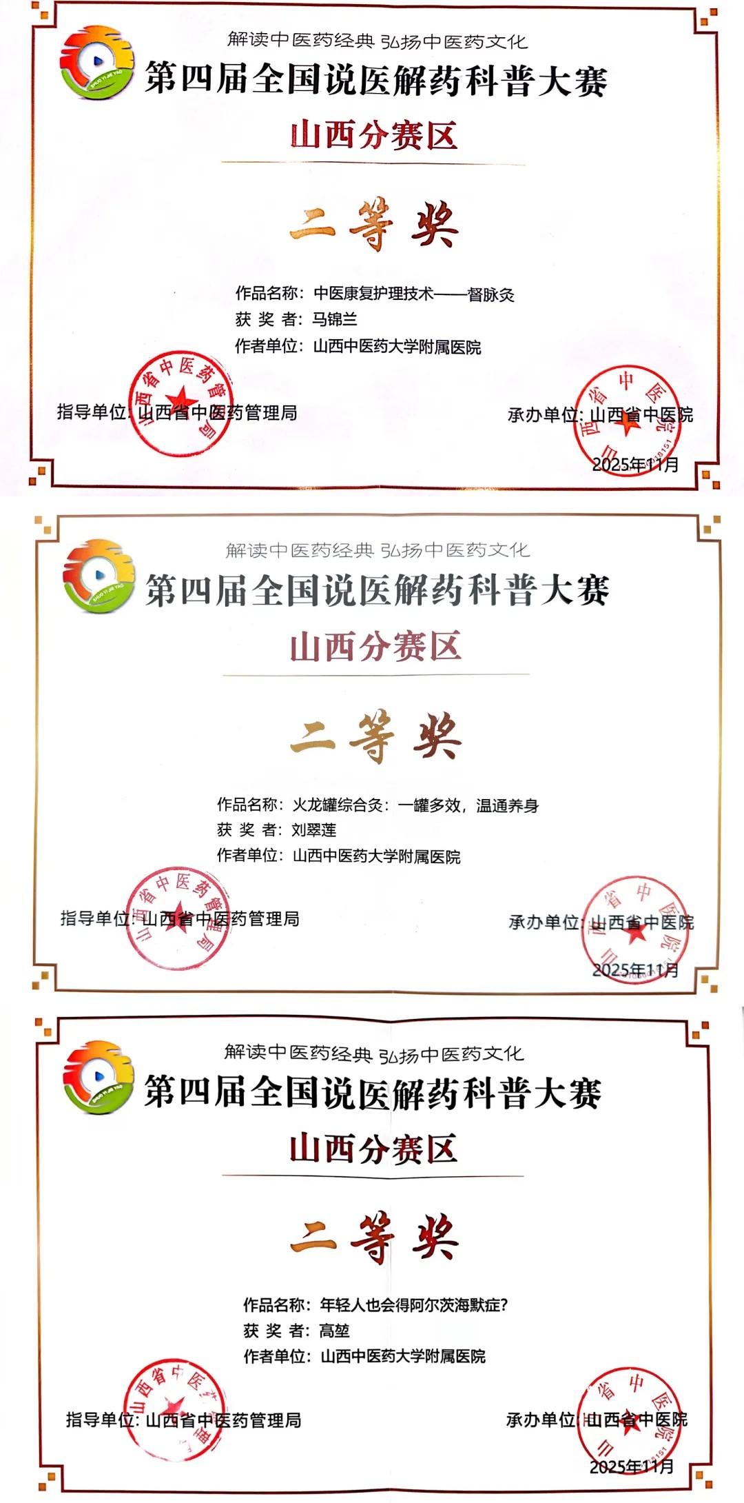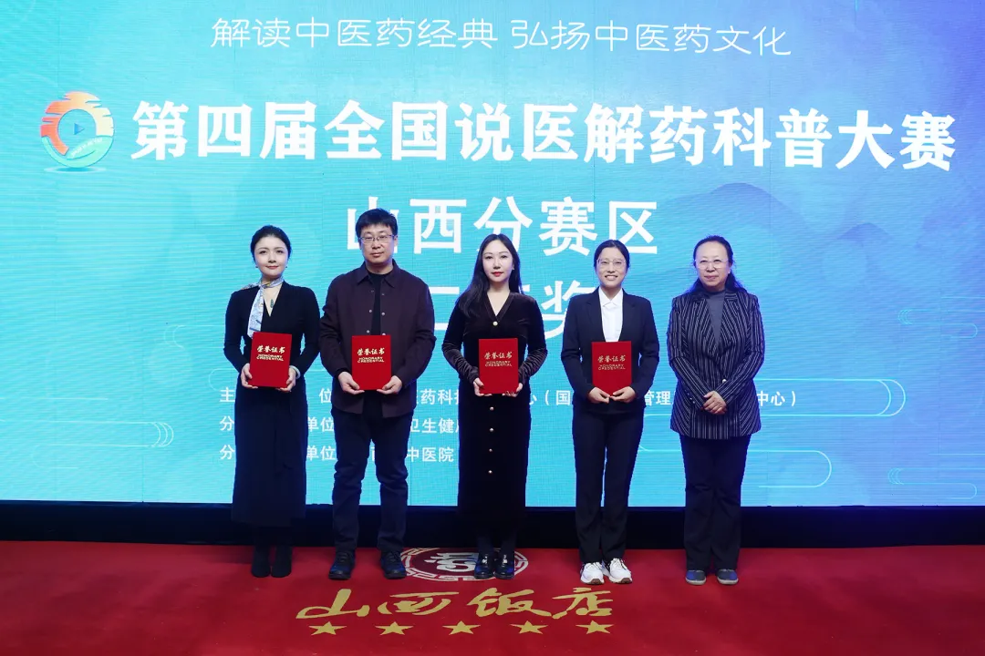 11月14日,第四届全国说医解药科普大赛(山西分赛区)活动在山西省中医药学会中医药文化宣传专业委员会成立大会上举行颁奖仪式。山西省医院协会副会长单位——中国中医科学院西苑医院山西医院(山西中医药大学附属医院)斩获三个二等奖、两个三等奖,获奖数量位居全省医疗机构首位。