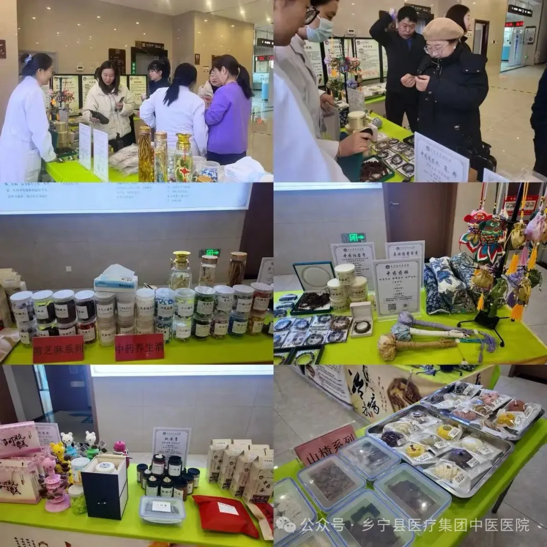 成品展示区陈列了该院自制的秋梨膏、阿胶糕、中药棒棒糖、中药足浴包、中药洗发水、中药洗发皂、中药面膜粉、中药药锤等。并为驻足群众讲解各类制剂的特点、使用方法及注意事项,让大家近距离了解中药制剂的种类和实用价值,进一步增进对中医药服务的认知。
