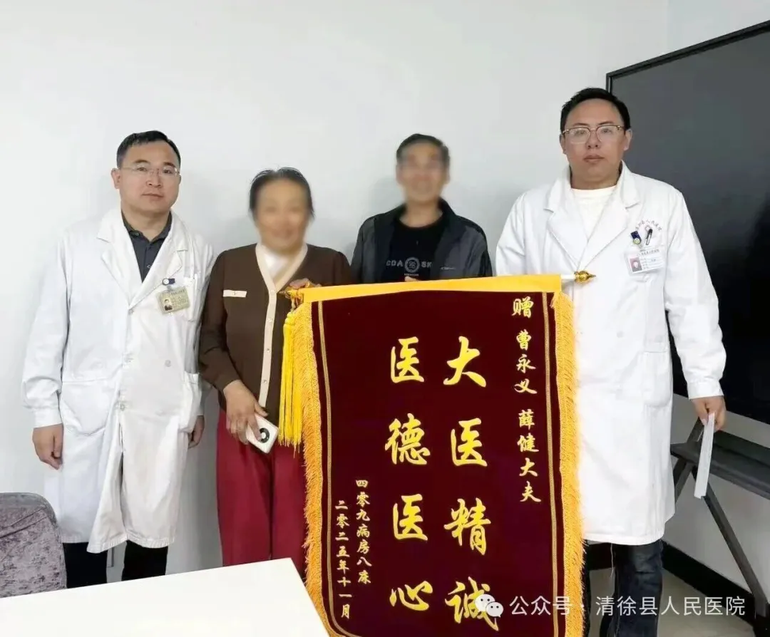 “感谢曹医生、薛医生,感谢骨科全体医护人员!是你们的精湛医术和贴心照顾,让我重新站了起来!”近日,患者王女士与家属将一面印着“医德医心 大医精诚”的锦旗山西省医院协会理事单位——清徐县人民医院骨科,她们紧紧握住医生曹永义、薛健的手,言语间满是感激。