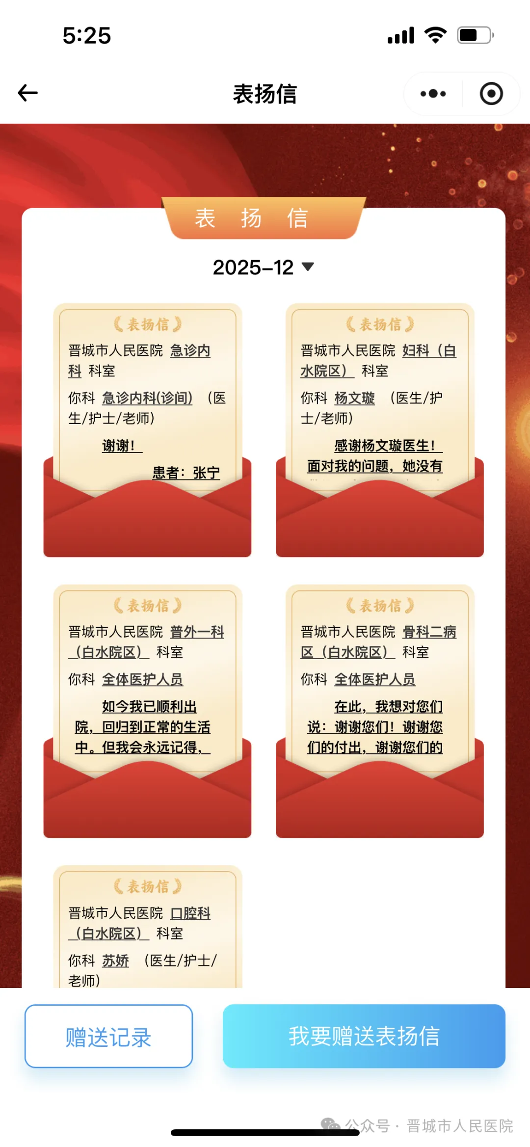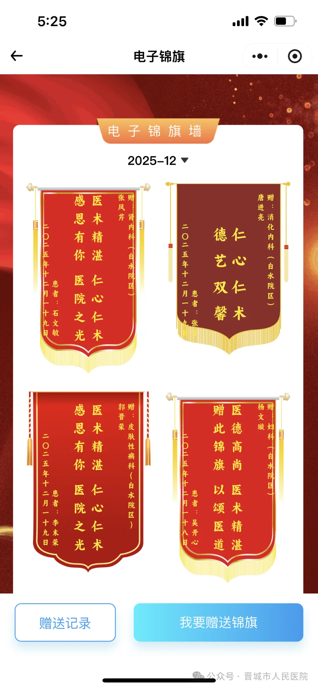 晋城市人民医院建议大家,在感受到医术的精湛、服务的贴心时,不妨打开医院小程序,用电子锦旗或表扬信,让这份感动被看见、被铭记。(成宇珍 开西 赵波 韦高文)