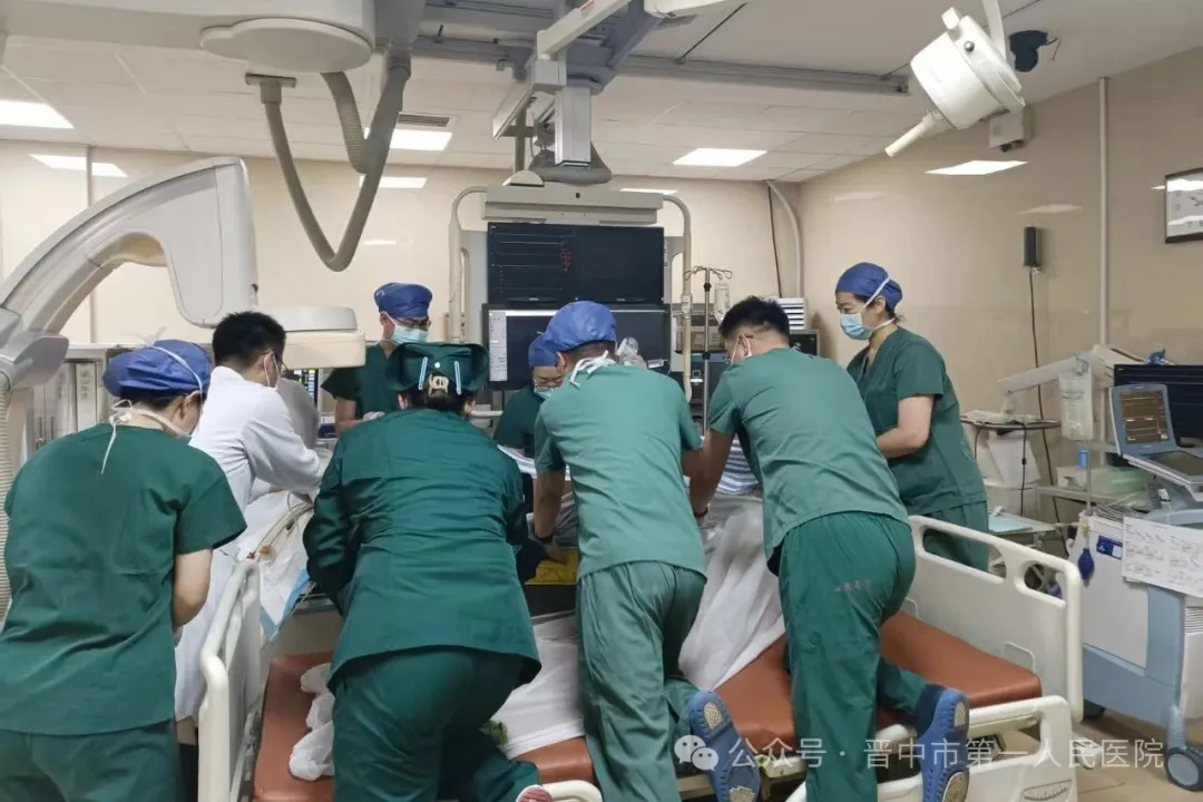 患者送达前,晋中市第一人民医院已启动急危重症患者救治应急预案,组织心血管内科主任光彬、副主任梁廷臣,心胸外科副主任(主持工作)辛海龙,重症医学科副主任(主持工作)张勇进,手术麻醉科副主任医师郑玉宾等多学科专家及相关医护人员准备诊,抢救设备、药品全部就位,抢救通道全程畅通。