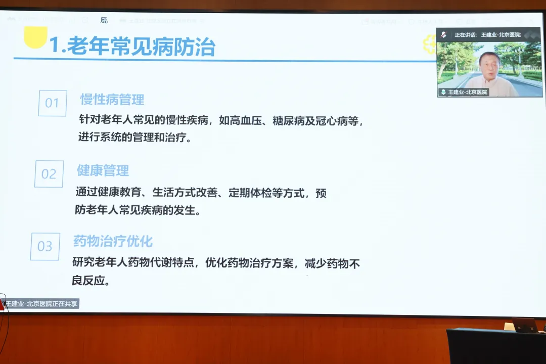 山西省医院协会副会长单位——山西白求恩医院党委副书记、院长刘先胜,中华医学会老年医学分会原主任委员、北京医院王建业教授,山西省老年医学学会会长刘学军,中华医学会老年医学分会现任主任委员、武汉同济医院张存泰教授出席会议并致辞,从不同角度阐述了老年慢病防控的重要性,强调在老龄化社会背景下,跨学科合作、全程化管理与科技创新对提升老年健康水平的深远意义。山西白求恩医院综合医疗科/老年医学科主任陈园、王蕾共同主持论坛开幕式。