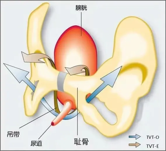 TVT-O、TVT-E的优势在于:一、微创特性:手术在大腿根部内侧做两个0.5厘米的微小切口,通过特殊的穿刺针,将一根柔韧的“吊带”置入体内,从尿道中段下方穿过,形成一个轻柔的“人造韧带”,术中出血少。二、原理精妙,恢复生理功能:这根吊带就像给松弛的“水龙头开关”(尿道)加了一个“托举”。平时它毫无存在感,不影响正常排尿;但当患者咳嗽、大笑腹部压力增高时,这根吊带正好提供支撑力,防止尿液漏出,完美模拟了正常的尿道闭合机制。三、时间更短,恢复更快:整个手术过程约20-30分钟,出血量很少。术后疼痛轻微,症状即刻得到改善,无需长期卧床,极大地减轻了患者的痛苦和经济负担。四、术后改善明显:能有效改善或解决腹压增加(如咳嗽、打喷嚏、运动)时的漏尿问题,且远期效果良好。