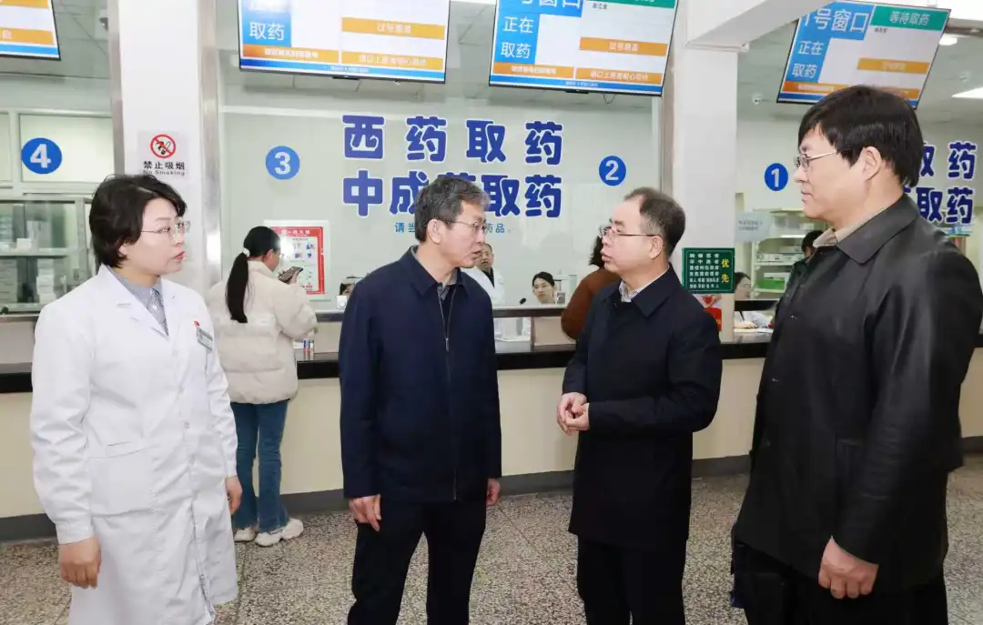 会前,李平一行在山西省汾阳医院门诊取药窗口、中心药房、CT室、医保窗口进行调研指导。(申阳 赵剑 朱俊琳 张沛刚)