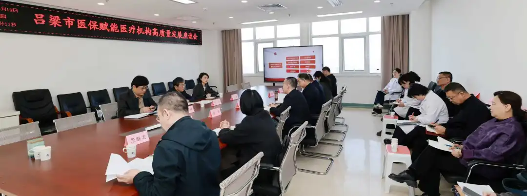 3月19日,吕梁市医保赋能医疗机构高质量发展座谈会在山西省医院协会常务理事单位——山西省汾阳医院召开。吕梁市医保局局长李平、吕梁市医疗保险管理服务中心主任王丽、吕梁市医保局医药科科长朱岩峰出席会议。山西省汾阳医院党委书记张沛刚,党委副书记、院长张耀武以及汾阳市人民医院、孝义市中心医院、文水县人民医院、交城县人民医院负责人参会。此次会议旨在进一步深化医疗保障制度改革,充分发挥医保赋能增效作用,推动医疗机构控成本、提质量、强特色、优服务,构建价值导向、精准激励、协同发展的医保医疗联动机制,更好助力全市医疗机构高质量发展。