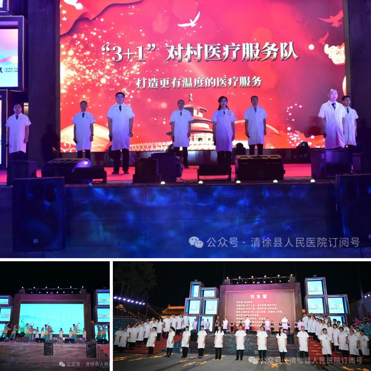 夜幕中,一场以“致敬医者,弘扬中医”为主题的庆祝活动,在清源水城大宝船舞台上举办,10个精心编排的文艺节目轮番上演。医务人员用优美的动作、甜美的声线,尽情展示职业风采,赢得现场群众一片喝彩。