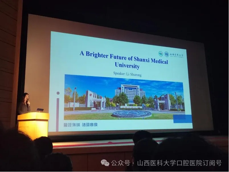 在第八届大阪齿科大学国际学生论坛(Forum for International Students,FIS)上,包括山西医科大学口腔医院在内的中国8所院校的学生代表与大阪齿科大学的学生代表进行了全英文汇报,介绍了各自的学校概况及院校最新研究成果。李姝蓉以“A brighter future of Shanxi Medical University”为题,对山西医科大学及口腔医学院进行了简要介绍,并重点介绍了口腔医学院的科研进展,受到了全体老师及同学们的认可。