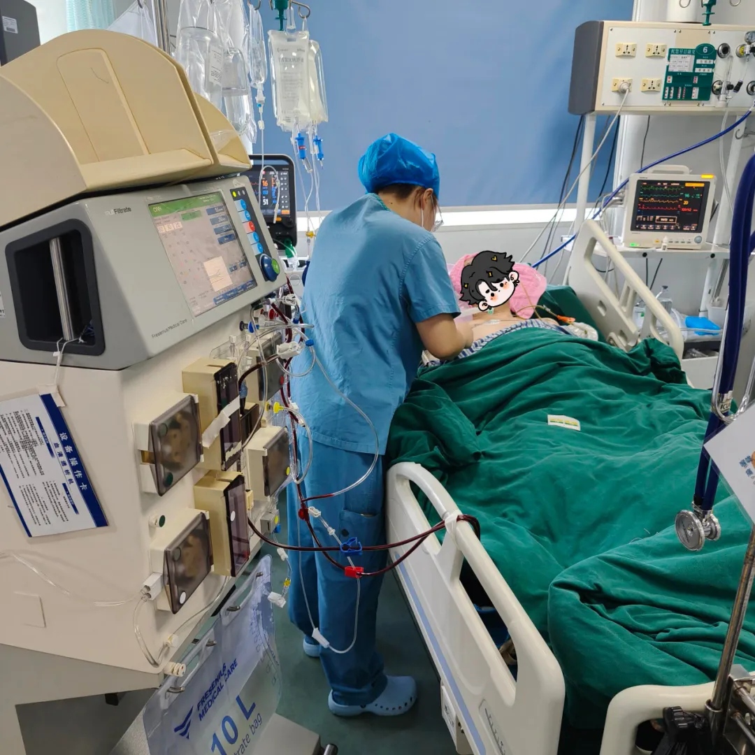 其时,患者表现为心律不齐,血压低,意识昏迷状态,左侧瞳孔直径5.0mm,对光反射消失,病情危重。血气分析示,患者血钾高达8.6mmol/L,PH值7.0,乳酸15.2mmol/L。值班医生闫安与家属沟通病情后,决定对患者行CRRT(连续性肾脏替代治疗)。就在管路预冲期间,患者出现血压下降、心室颤动迹象,需立即开始大抢救。
