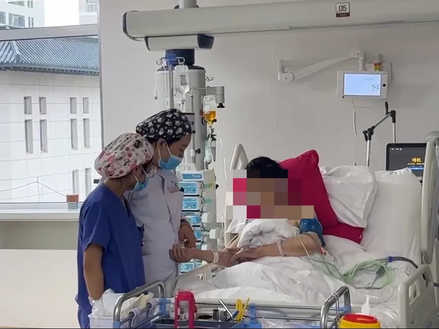 6月4日,马阿姨突然出现胸憋、气紧,间断干咳并呕吐不止,医护立即予以对应治疗。但十几分钟后,马阿姨再次呼吸困难,气喘不适加重,意识水平下降,血压高至179/103mmHg,指尖血氧饱和度降为89%,心率快至104次/分。此时的她面色紫暗、口唇青紫、大汗淋漓,虽神志清醒,但不能言语,精神萎靡。主管医生查体发现,其双肺呼吸音弱,可闻及少许喘鸣音,左侧瞳孔1.0mm,光反射迟钝。接到通知的心血管病中心和肺病科专家火速前来会诊,给予无创辅助通气、湿化气道等抢救措施,但收效甚微。闻讯而来的重症医学科负责人郭海伟马上展开辅助抢救,通过细致检查,发现患者凝血功能严重异常,肺部感染,考虑存在肺性脑病,立即予以静脉滴注以持续兴奋呼吸中枢,同时调整呼吸机氧浓度。经过一小时的紧张有序抢救后,马阿姨各项指标趋于稳定,经家属同意后转入ICU进一步治疗。