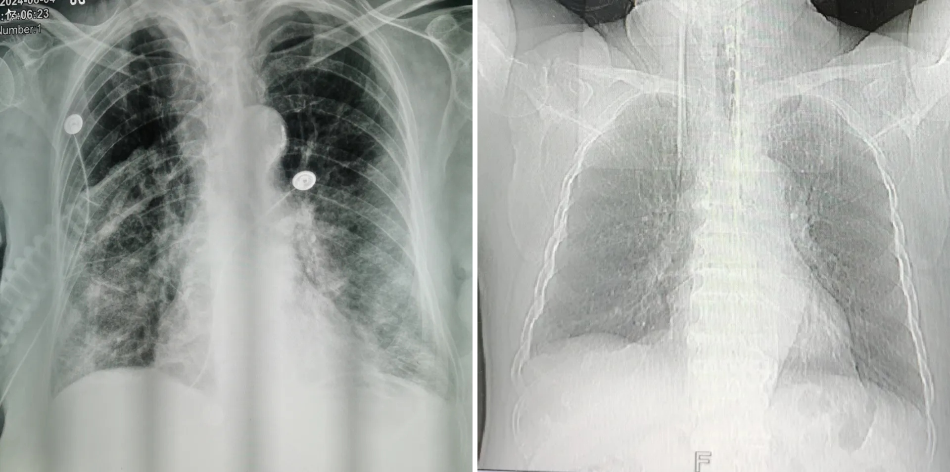 ICU医护团队第一时间召开紧急病例讨论会,为马阿姨制定了精密的治疗方案。在动态复查血气、关注炎症、凝血、肝肾功能及电解质水平的基础上,予无创呼吸机辅助呼吸,提高氧供,改善氧合,减轻心脏负荷。结合床旁胸片给予静滴以防止感染,配合雾化吸入降低气道炎症,改善气道痉挛,帮助患者祛痰……5日后,复查结果显示,马阿姨恢复良好,不仅意识清楚,精神状态也好了起来,能够顺畅地和医护进行交流。看到马阿姨转危为安,家属悬着的心终于放下了。