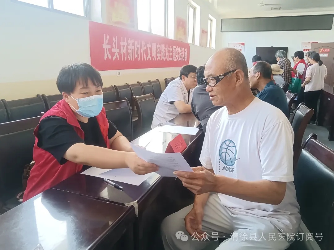 此次义诊由清徐县人民医院党委副书记张立海带队,山西省人民医院甲状腺外科、神经外科、中医科、骨科、风湿免疫科、妇科等科室专家及清徐县人民医院老年医学科主任庞继强、中医科主任宋锐、耳鼻喉科主治医师董万钢、内二科医师刘翰琼、彩超室医师李红娟参加,共服务村民200余人次。